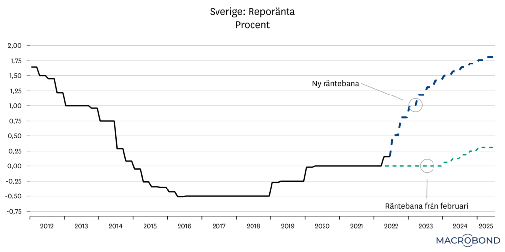 Det är en anpassning till prissättningen på marknaden som indikerar förväntningar på täta höjningar både i år och nästa år. Det som har lett fram till 180-graderssvängen är som bekant den allt högre inflationen som har överraskat de flesta bedömare.