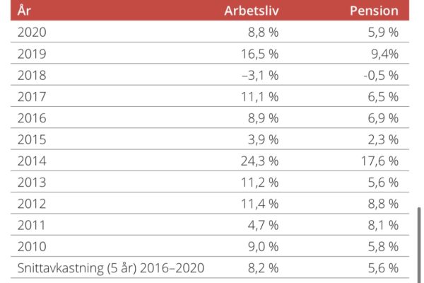 2) Historisk illustration för avkastning för SPPs Typkunder. Notera att historisk avkastning ej är en garanti för framtida avkastning.