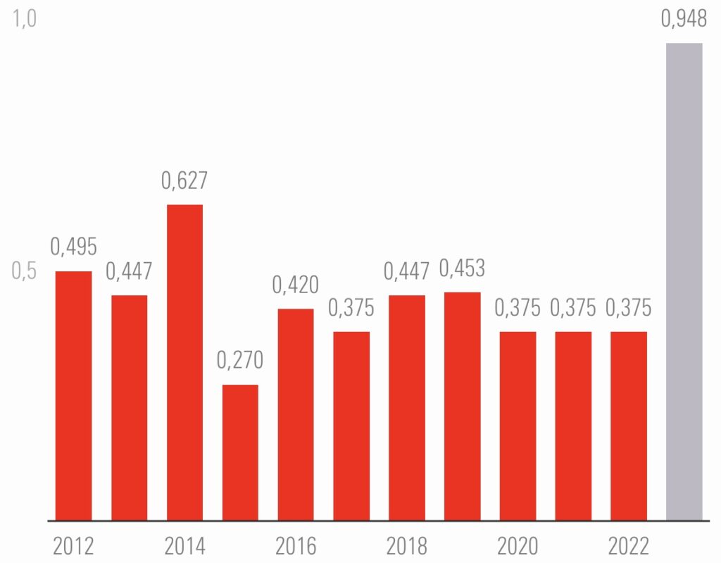 Den 21 oktober 2022 låg statslåneräntan på 2,22 procent. Om vi utgår från att samma nivå gäller vid november månads utgång – då statslåneräntan som används vid beräkning av skatten för ISK fastställs – innebär det en betydande skattehöjning för ISK och kapitalförsäkringar. Med nuvarande regler innebär det en schablonintäkt på 3,22 procent vilket skulle innebära en skattenivå på cirka 1 procent för 2023.